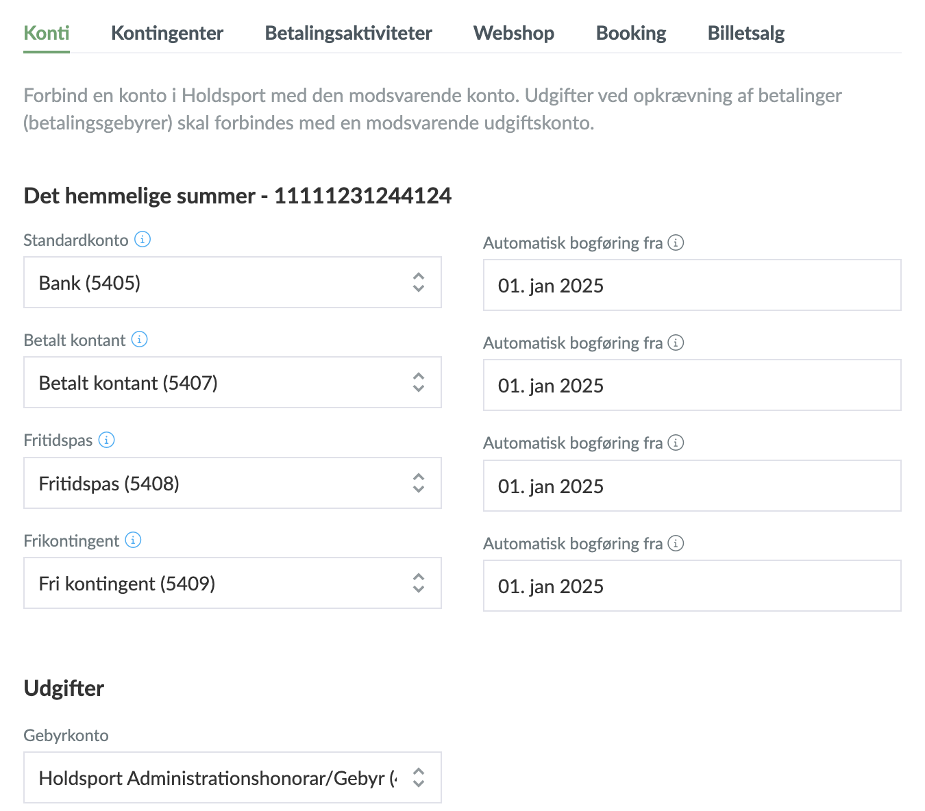 - Vælg også en startdato for, hvornår den automatiske bogføring skal begynde.