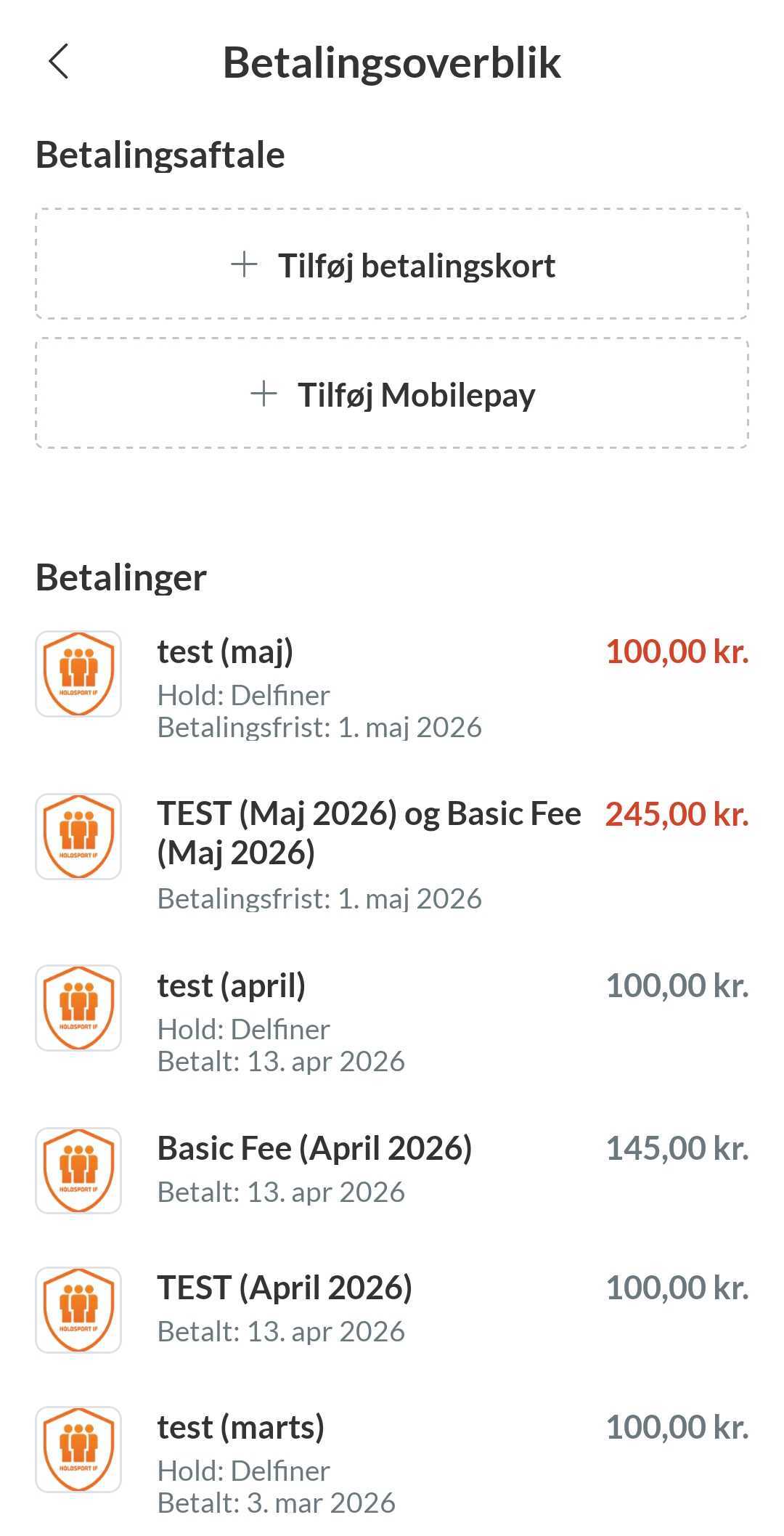 BEMÆRK: Foreningen kan bestemme, at kortoplysninger altid skal gemmes og trække automatisk næste træk. Foreningen kan også bestemme at man kun kan betale med Dankort